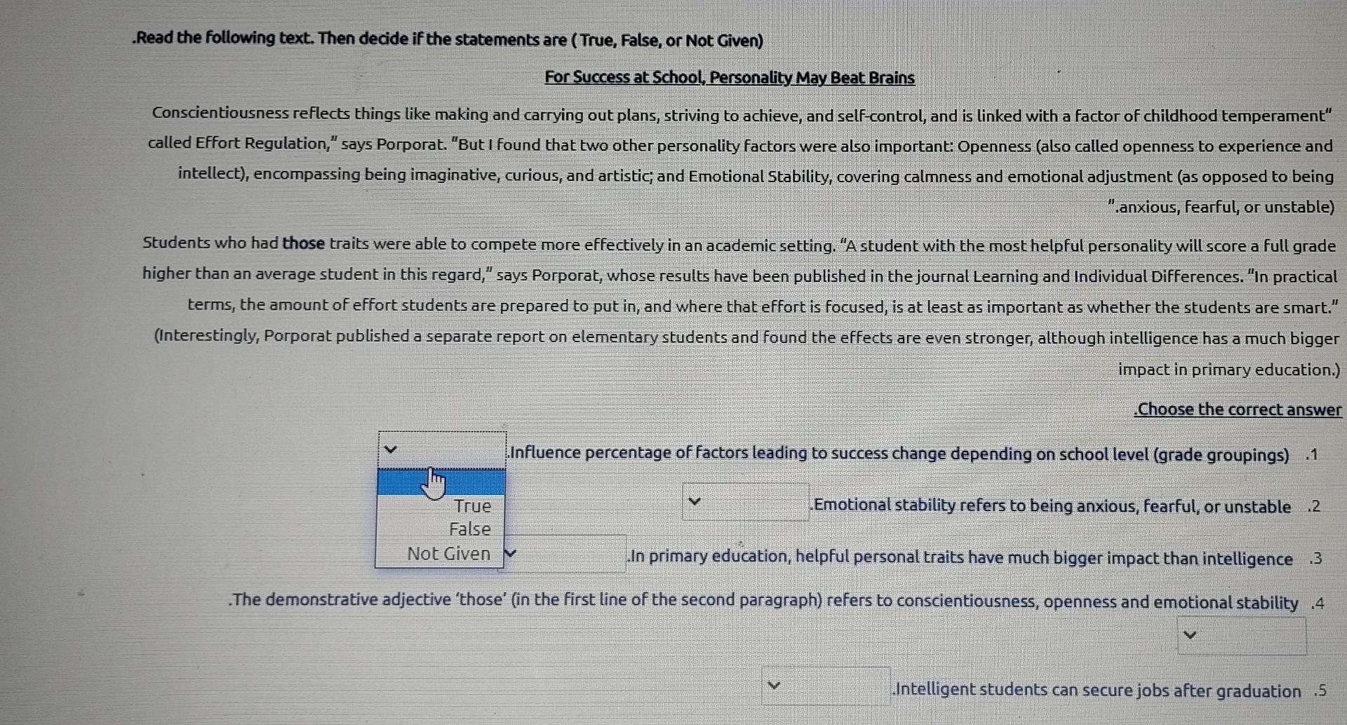 Adjectives Are Used to Describe Personality Traits. True False